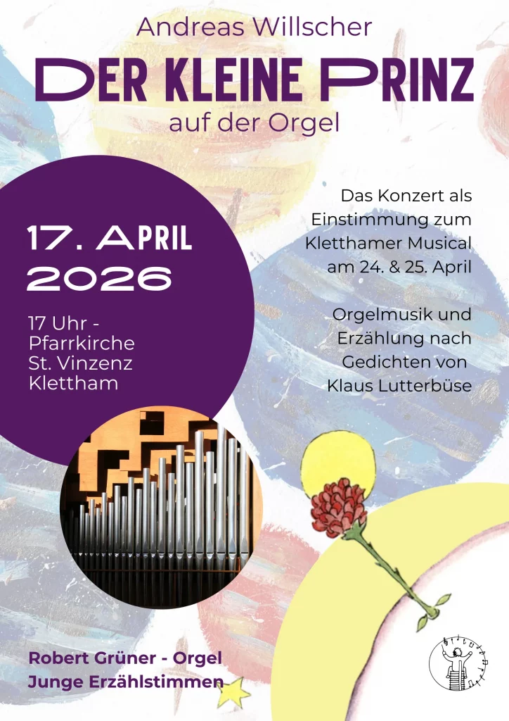 Das Konzert als Einstimmung zum Kletthamer Musical am 24. & 25. April. Orgelmusik und Erzählung nach Gedichten von Klaus Lutterbüse.